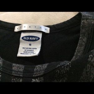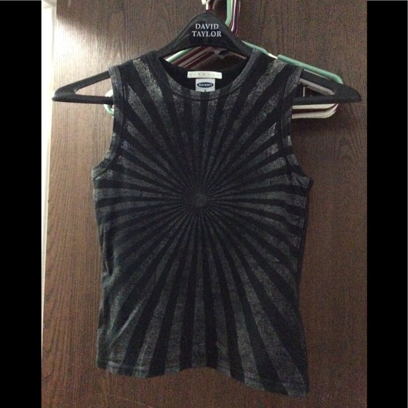 Unique design, black and silver, sleeveless top. Material is stretchy.