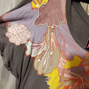 beads & sequins highlight the art design that drapes this super soft tshirt material
