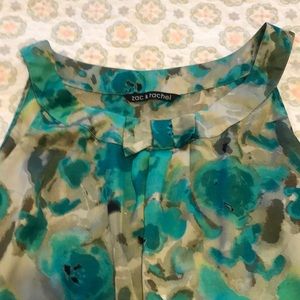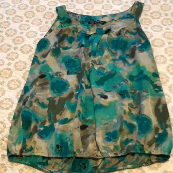 Green, gray and back sleeveless top .
