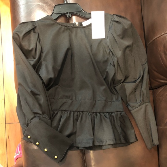 Ms. Bling Bling puffy sleeve top with gold round buttons on sleeve and gold zipper in the back. Never worn in excellent condition.