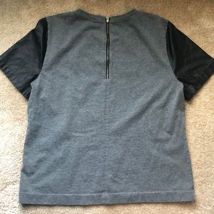 Dark grey cotton shirt with black leather shirt sleeve,zipper on the back