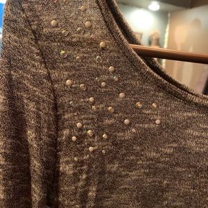 Long sleeved gray top with split sheer backing