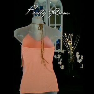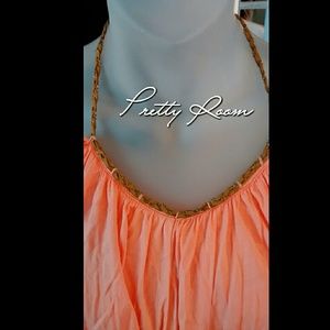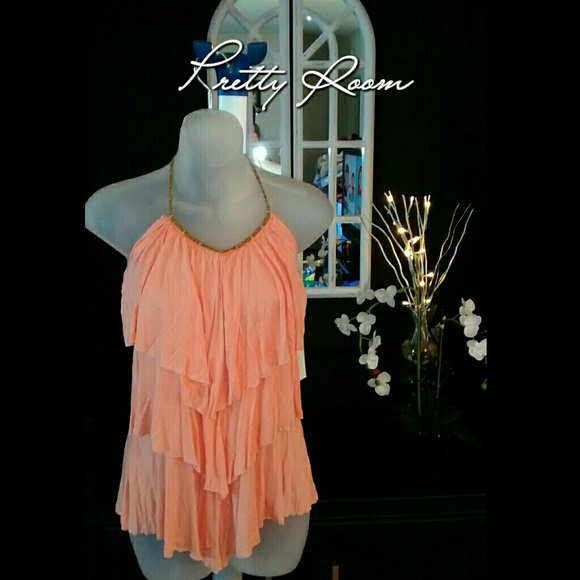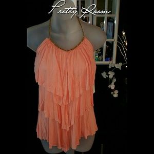 Coral Ruffles top with brown and Gold detail on neck. New with Tags.