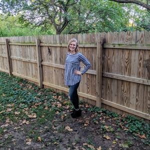 French Terry Striped Long Sleeved Babydoll Tunic. 100% Cotton. Made in the USA.