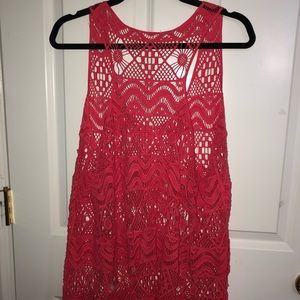 Pinky orange in color. Overlay lace type top. Smoke free home!