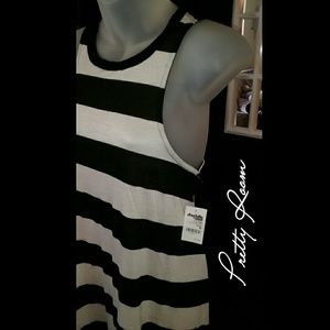 Long tank top/tunic black and white stripes this design it's perfect to cover your hips and provides a nice shape.