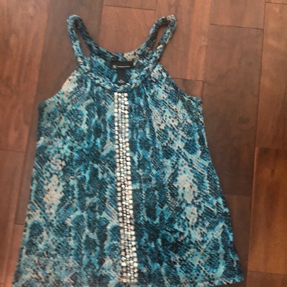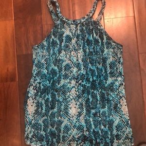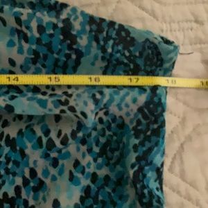 Cute and fun. Sleeveless top in Teal, gray and black light weight in 100% nylon machine washable, gentle cycle.