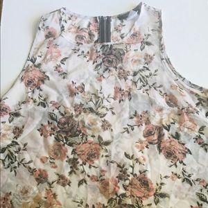 Sheer top with peach and green flowers. Also has a shirt zipper in the back at the top