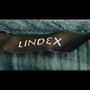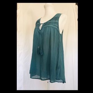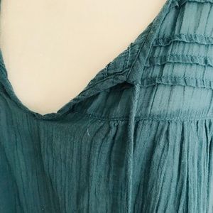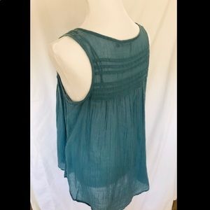 Teal color, thin, sleeveless top.