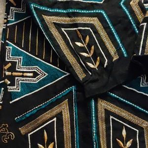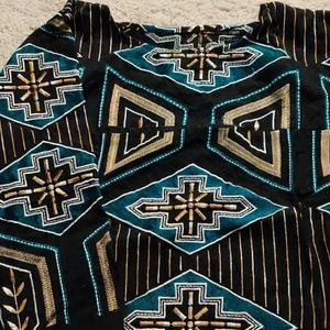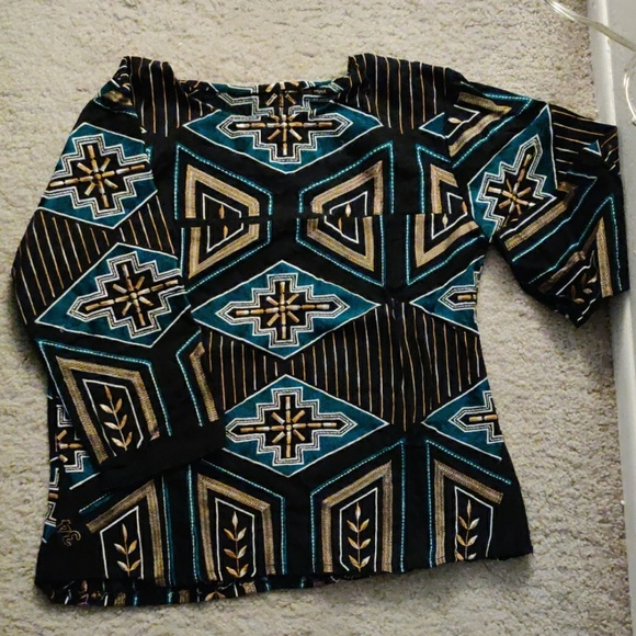 Thread work on black cloth with tribal print in size small. 3/4 sleeves