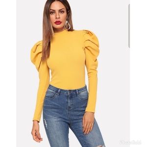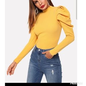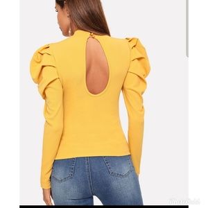 Elegant Style: Color: Yellow Pattern Type: Plain Neckline: Stand Collar Length: Regular Details Button, Cut Out Sleeve Length: Long Sleeve Sleeve Type: Leg-of-mutton Sleeve Season: Spring 95% Polyester, 5% Spandex