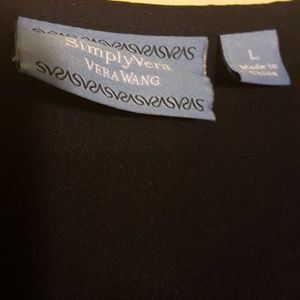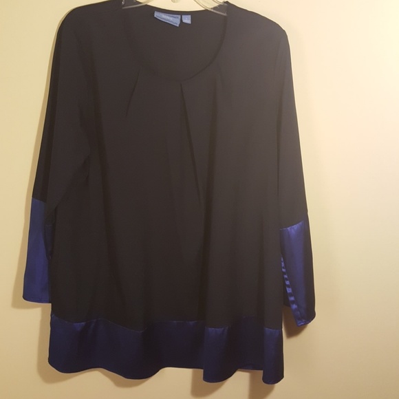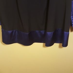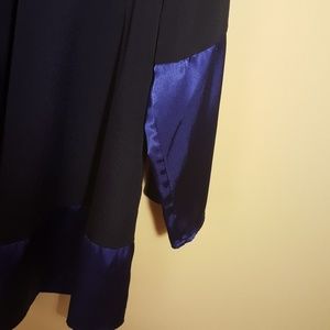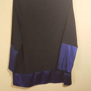 VGC SIMPLY VERA BY VERA WANG; Dark blue with royal blue trim at bottom and at end of sleeves. Bust 44"; sleeve length 22"; blouse