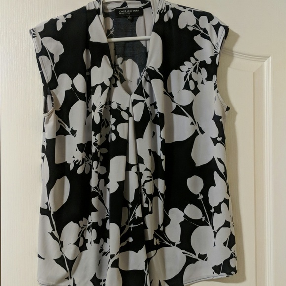 Sleeveless top with some pleating on the front. Works great with a blazer.