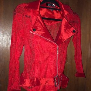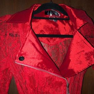 A very rich saturated red ful of life and vibrant vibe top lace jacket. With so many possibilities it will be your best friend. So useful and chicful too.