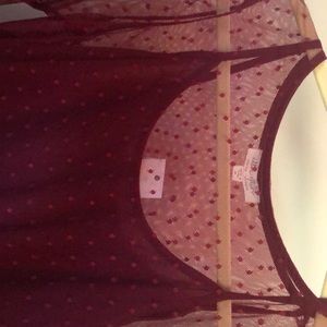 Burgundy sheer top with attached cami. Great for holidays with jeans or anything really.