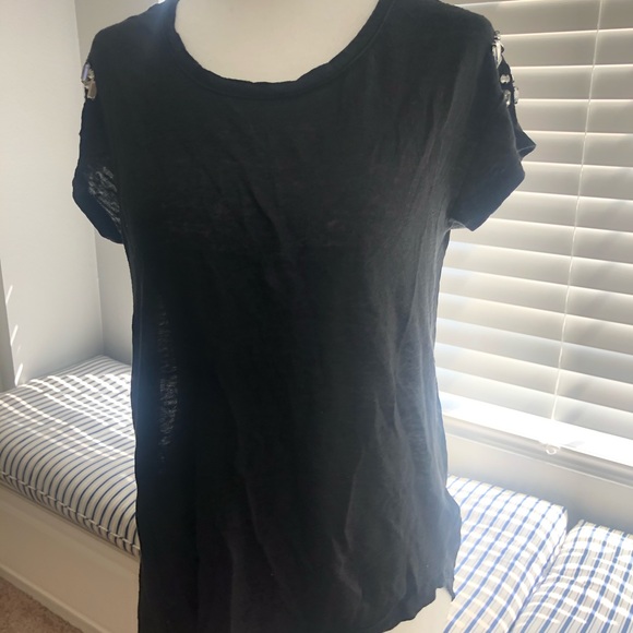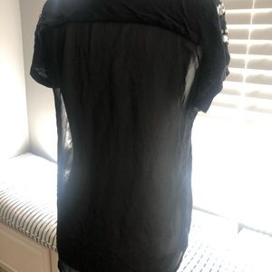 Cute stylish black tee with reign stone sleeve detail. Back is sheer and slightly longer than front.