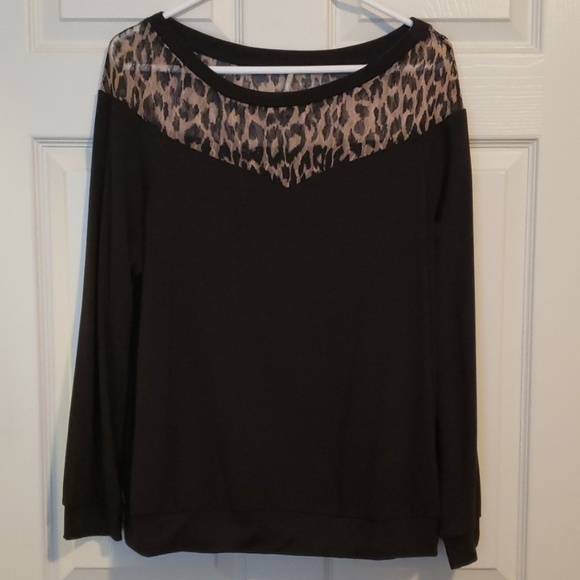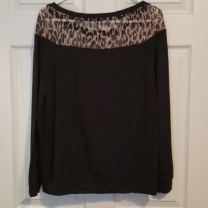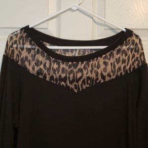 Black light weight material Shear leopard Banded bottom and sleeves Never worn