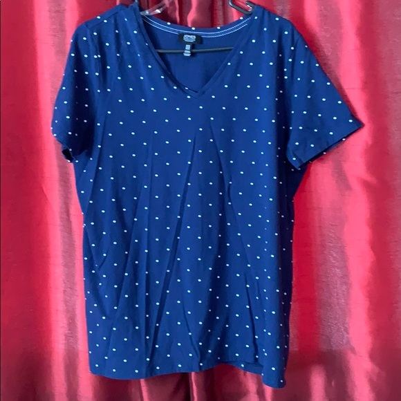 NWOT, just tried on, never worn, 1X navy blue with white polka dots top