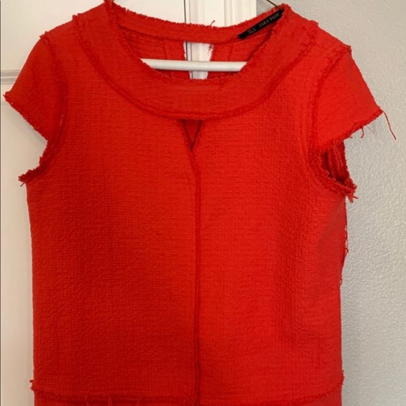Top. Red color. Distressed look. Size medium, but more in a small size.