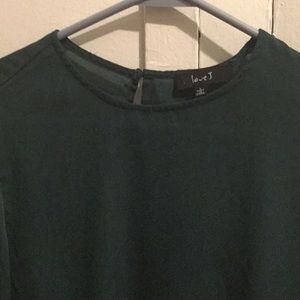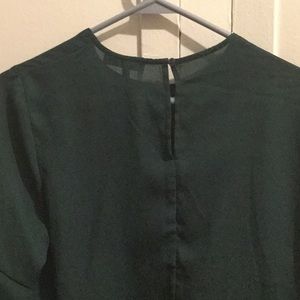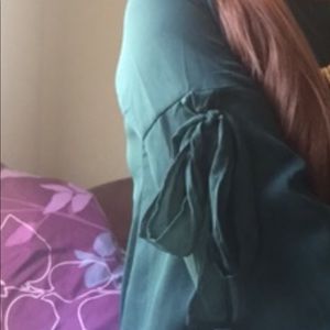Nice top,long sleeve with a tie bow on each side. Has one button on back. Hunter green.