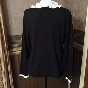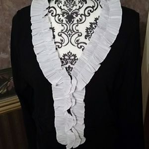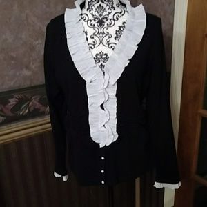 Brand new Pearl button down v-neck, ruffle around collar and partially down the front and bottom of sleeves. Sexy but conservative