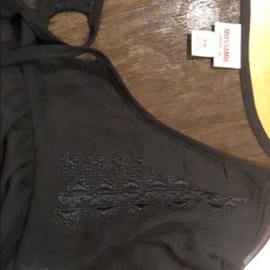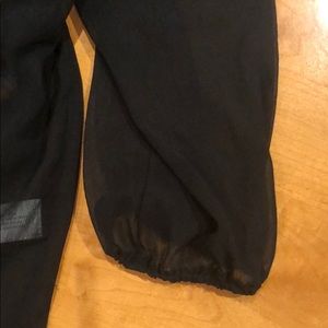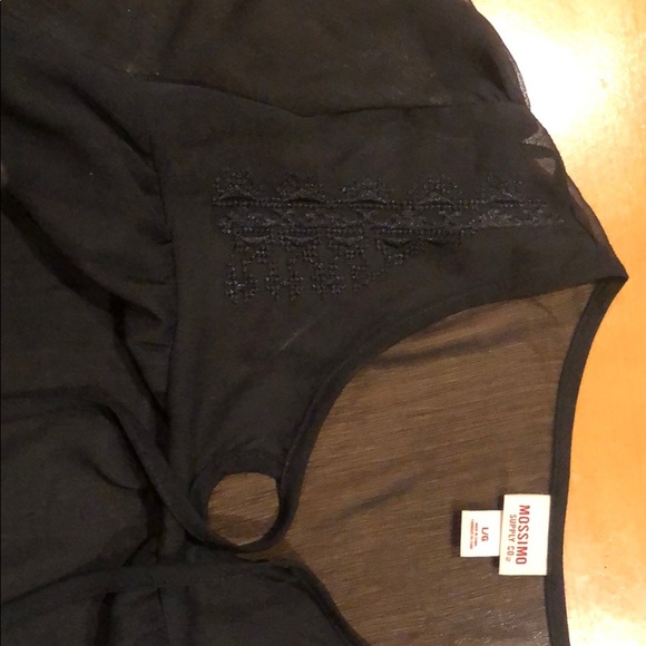Black sheer top. Cute with a black cami under it. Dress it up or down. Nice detailing and ties at the neck