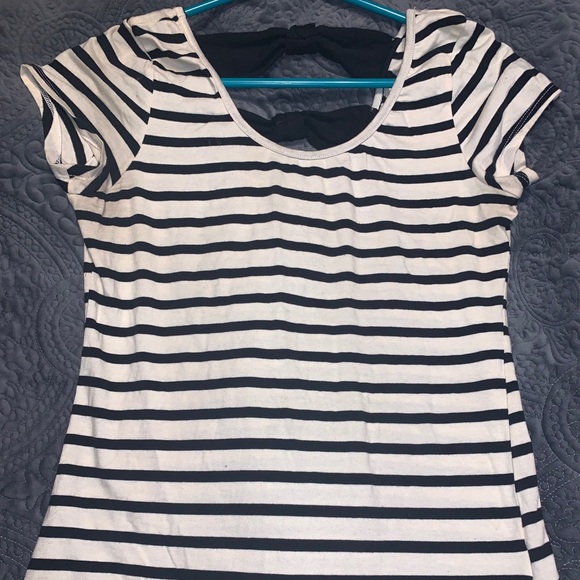 Black and white stripe shirt with bow cutouts in the back