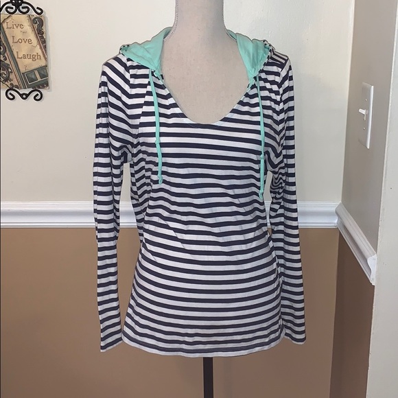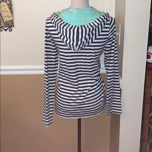Navy & white striped, hooded top