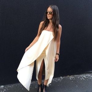 Brand new flowy top in sand, front is open, back is open, hidden tube top like support underneath top, still in original packaging with tag.