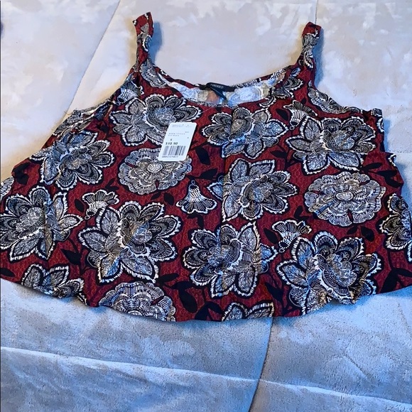 Blousy tank top with red, black and white floral design