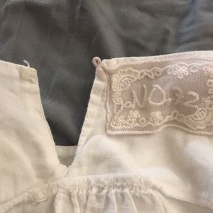 White lace top, i absolutely love this top i just never wear it anymore. the button is missing but i still wear it anyways bc my hair covers it :)