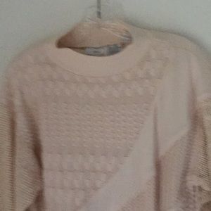 Beige knit lightweight top with simple but smart pattern on front. Back is solid knit