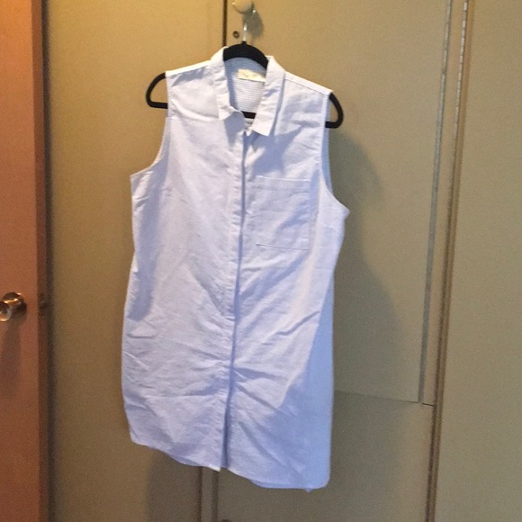 Longer Striped, sleeveless, linen shirt