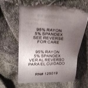 Joseph A, gray 95% rayon, 5% spandex.