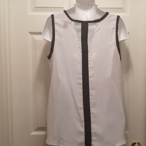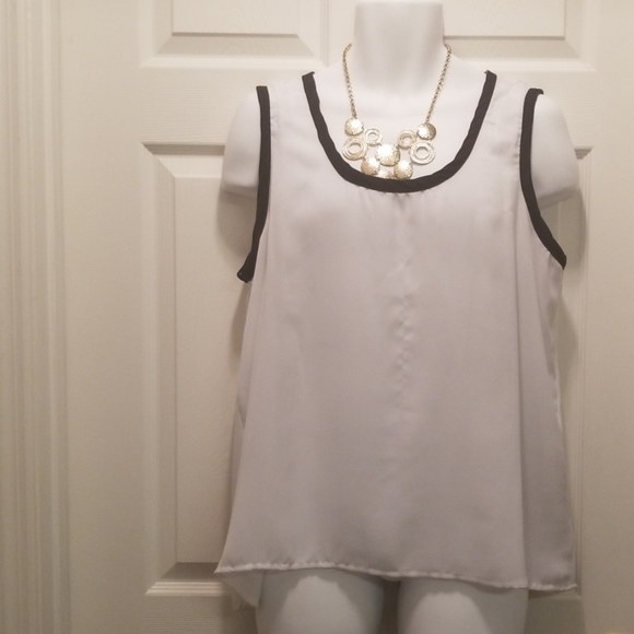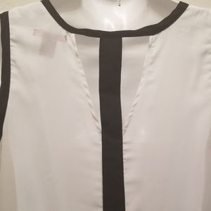 White sheer top with black contrast. Back has opening. Snag in front can see on picture above. Probably can be ironed out.