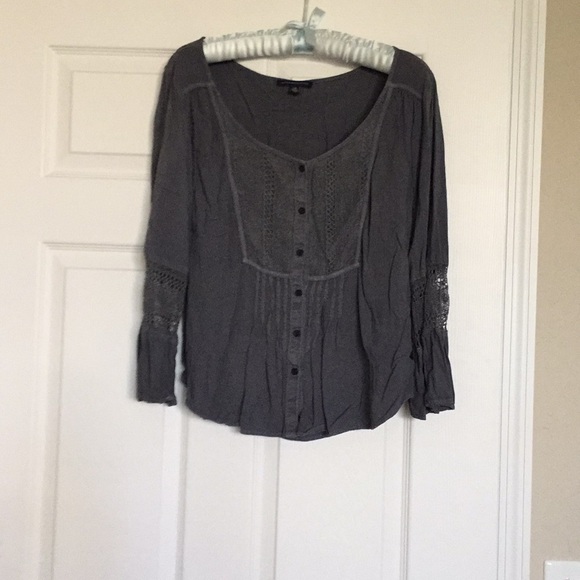 Grey, large, American Eagle top. Buttons down the front, long sleeve.