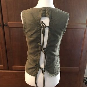 Adorable sleeveless top with tie design on back and press buttons on front