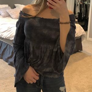 Off the shoulder blue long sleeve