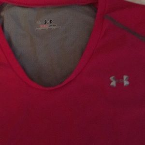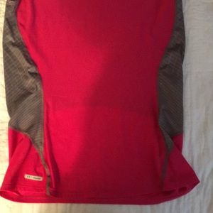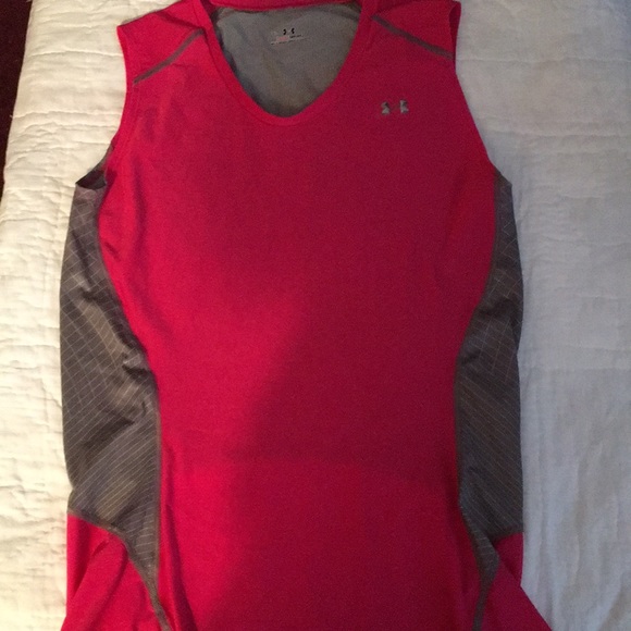 Under armor heat gear metal running shirt. Sleeveless. Size shows XL but I am a M and it fits perfectly.