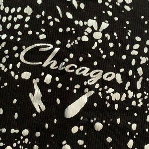 Black top with silver color written Chicago
