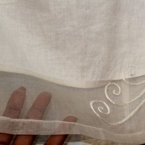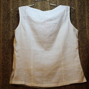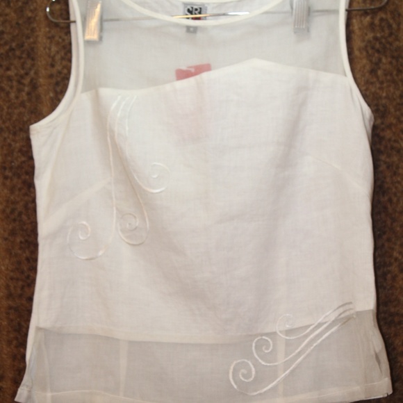 Cream colored tank w/top & bottom see thru panels. Size is medium, but small. Embroidery on front top and bottom also see-thru panels at neck and hem with splits. Zip on the side, plain back.