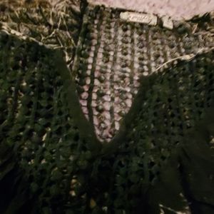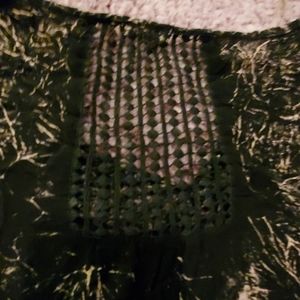 Adorable Gimmicks by BKE black and white tie dye top with webbed detail around front neck, on upper back and sleeves. Excellent condition. Measures underarm to underarm 18 inches. Length from shoulder to hem.