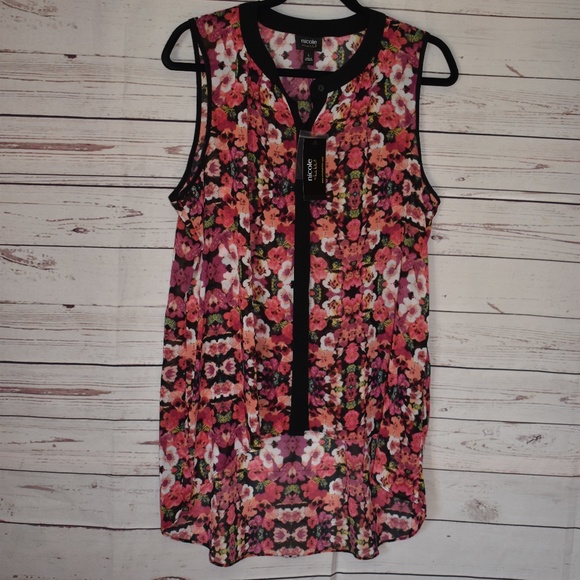 New! Nicole black trimmed sheer hi/low sleeveless top. Size L. No stains or picks in fabric. Great condition!