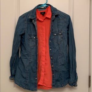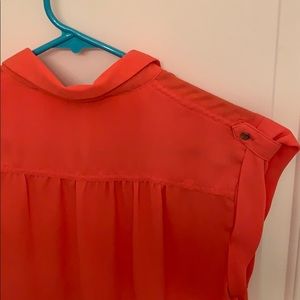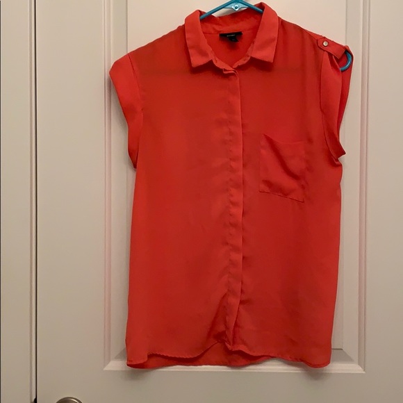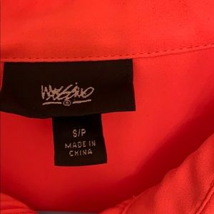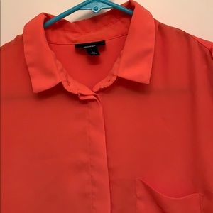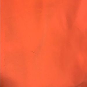 Brighter color in person. Worn once. Tiny little black line (would probably come out in the wash). Worn once. Picture of tiny black like on front of shirt near bottom