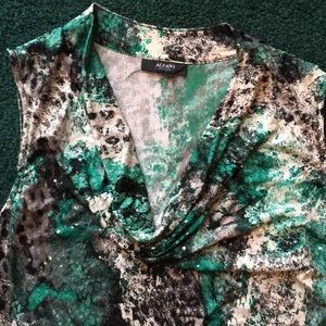 Sleeveless cowl neck spandex green, off white, black tank with sparkles