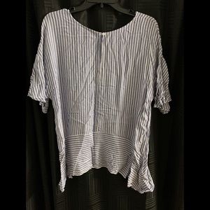 Worn once! Color is a soft denim like blue. Flowy shirt