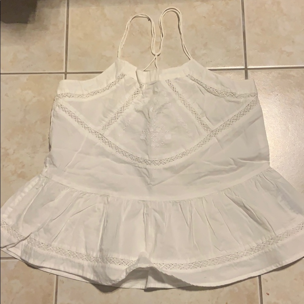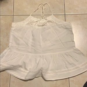 White crotchet shirt with a loose flow at the end, great for wearing during the summer time!
