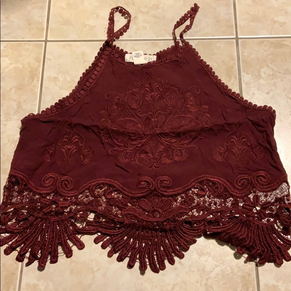 Burgundy lace top which is great for a night out, very light material but not see though