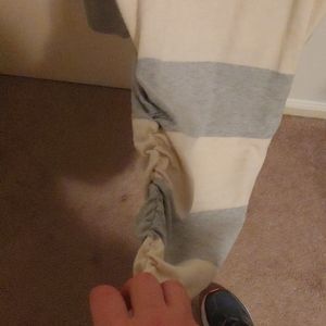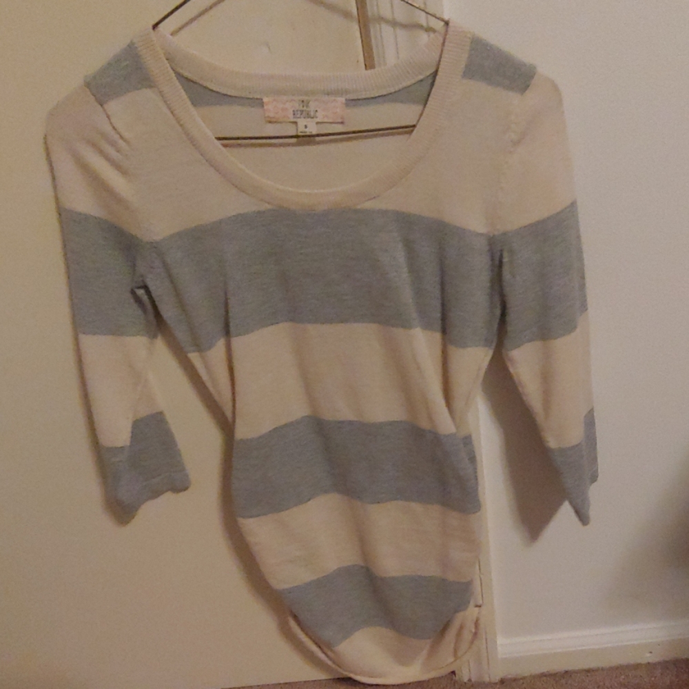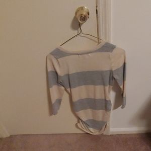 Off-white and gray striped top. Long sleeve. Crinkle fabric design on the sides. Never worn.
