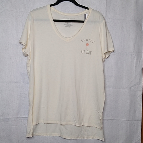 fun off white, short sleeved t-shirt, it says "SPRITZ ALL DAY" w/a glass of wine..NWT..